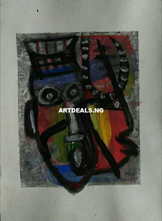 PAINTING 2019 Ekpan. Niger Delta Nigeria Fertility Masks (Urhobo) Acrylic/Oil pastel OK paper , 8/5 inches. Sale.